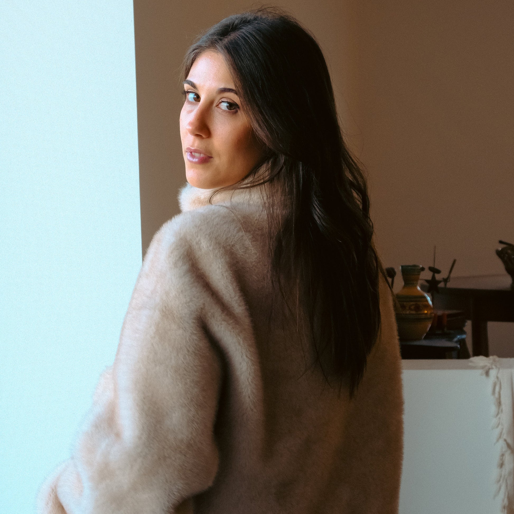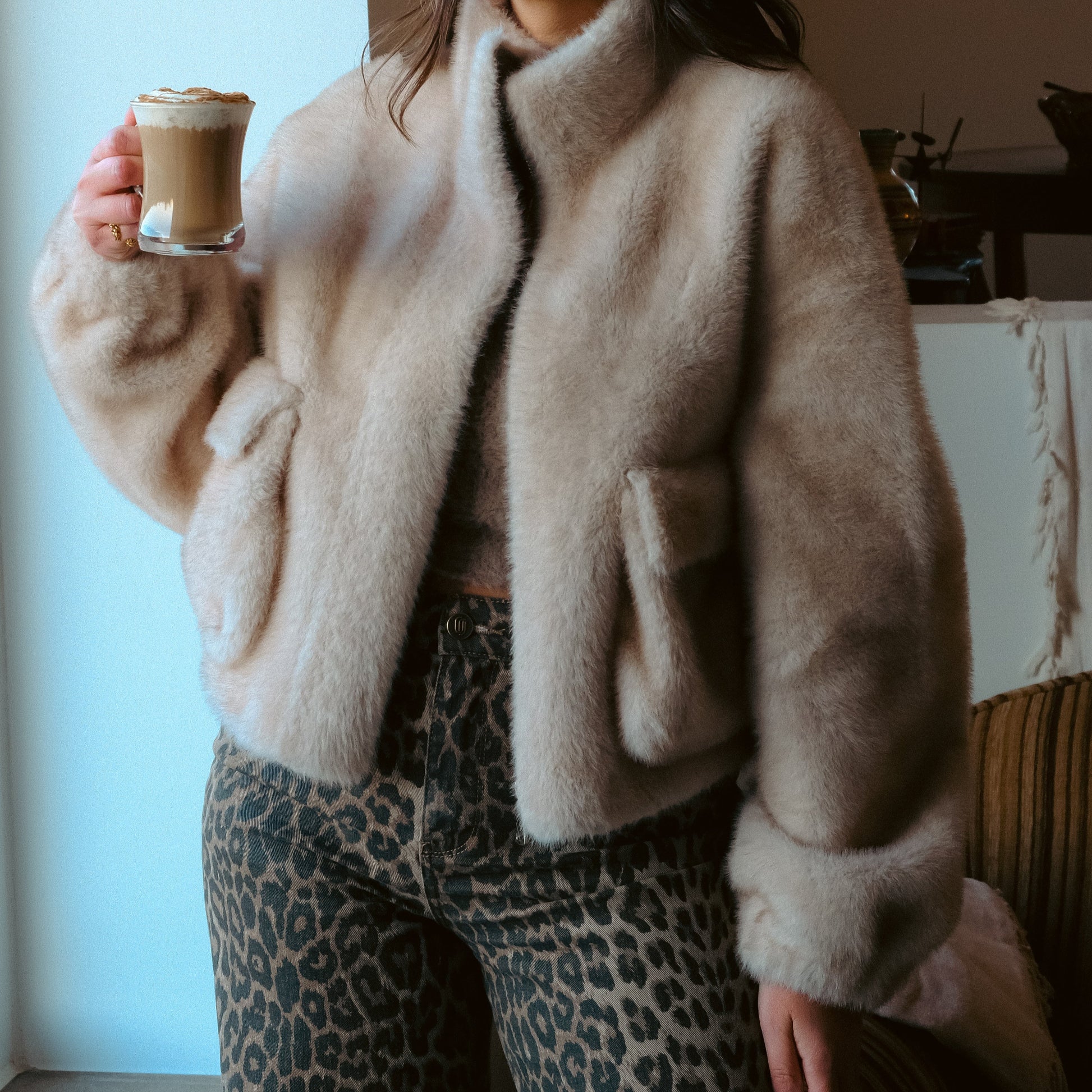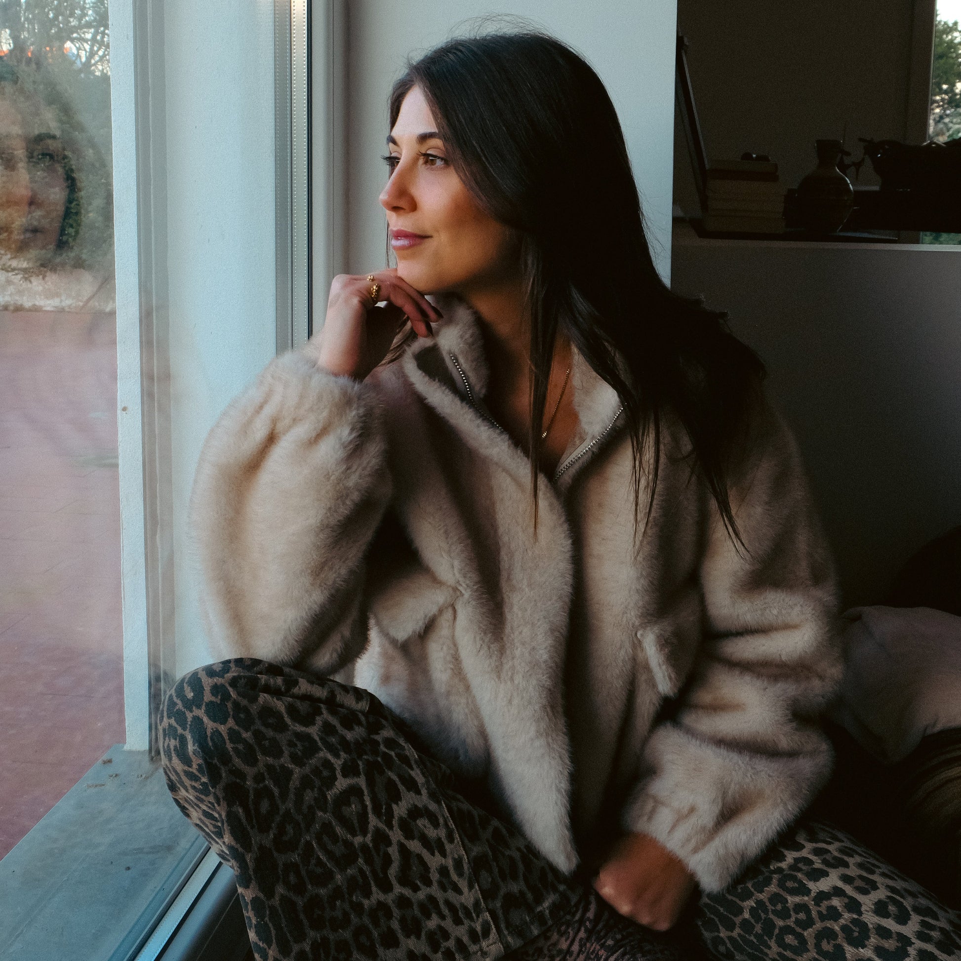 Fecho frontal com fecho de correr. Punho com acabamento em elástico.