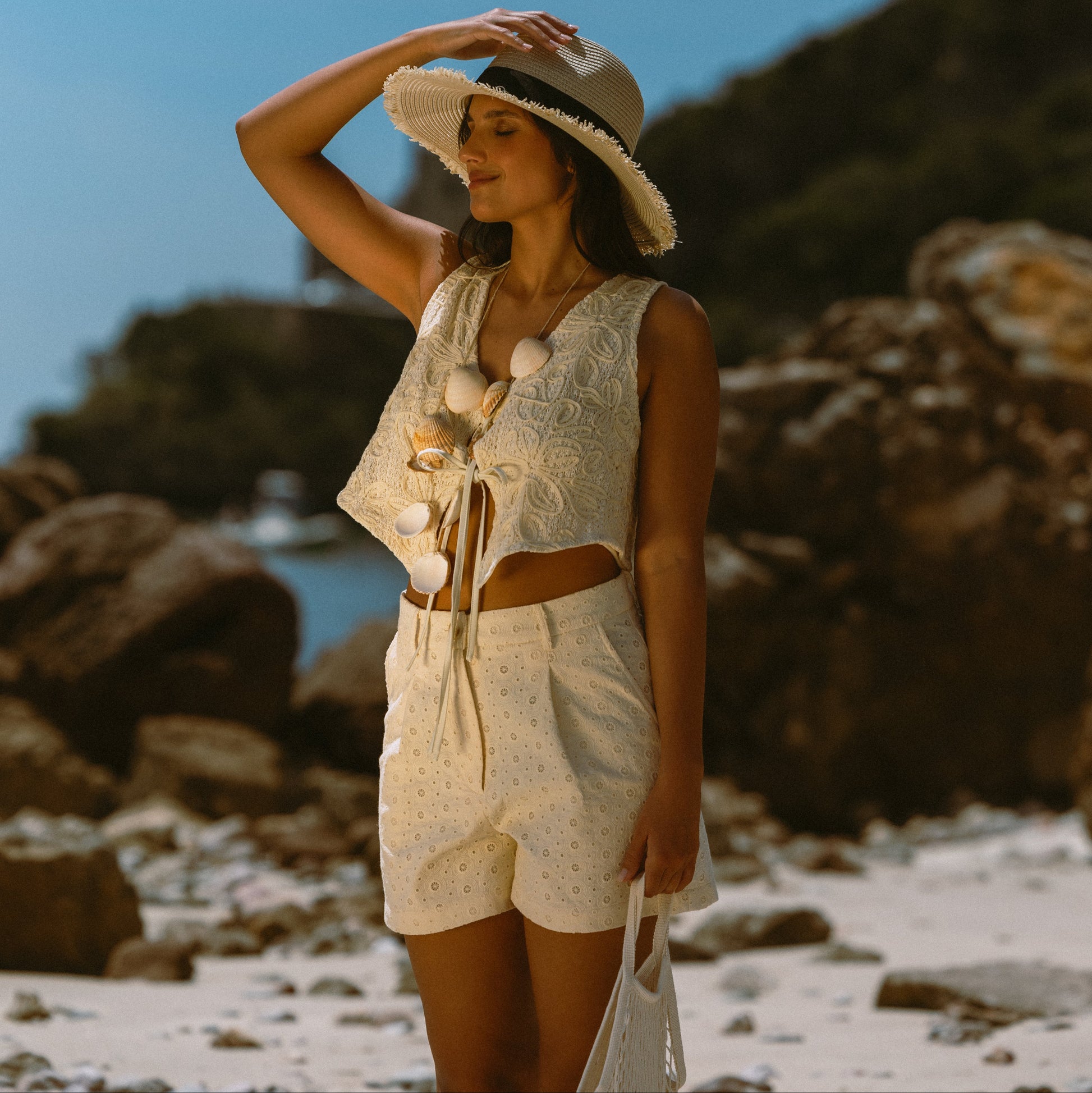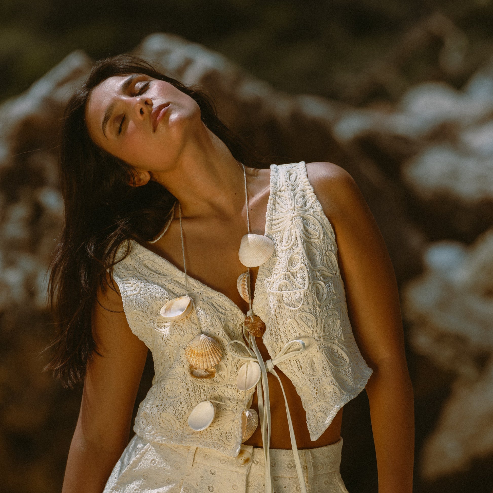O colete MARGHERITE é uma peça especial graças ao seu bordado.