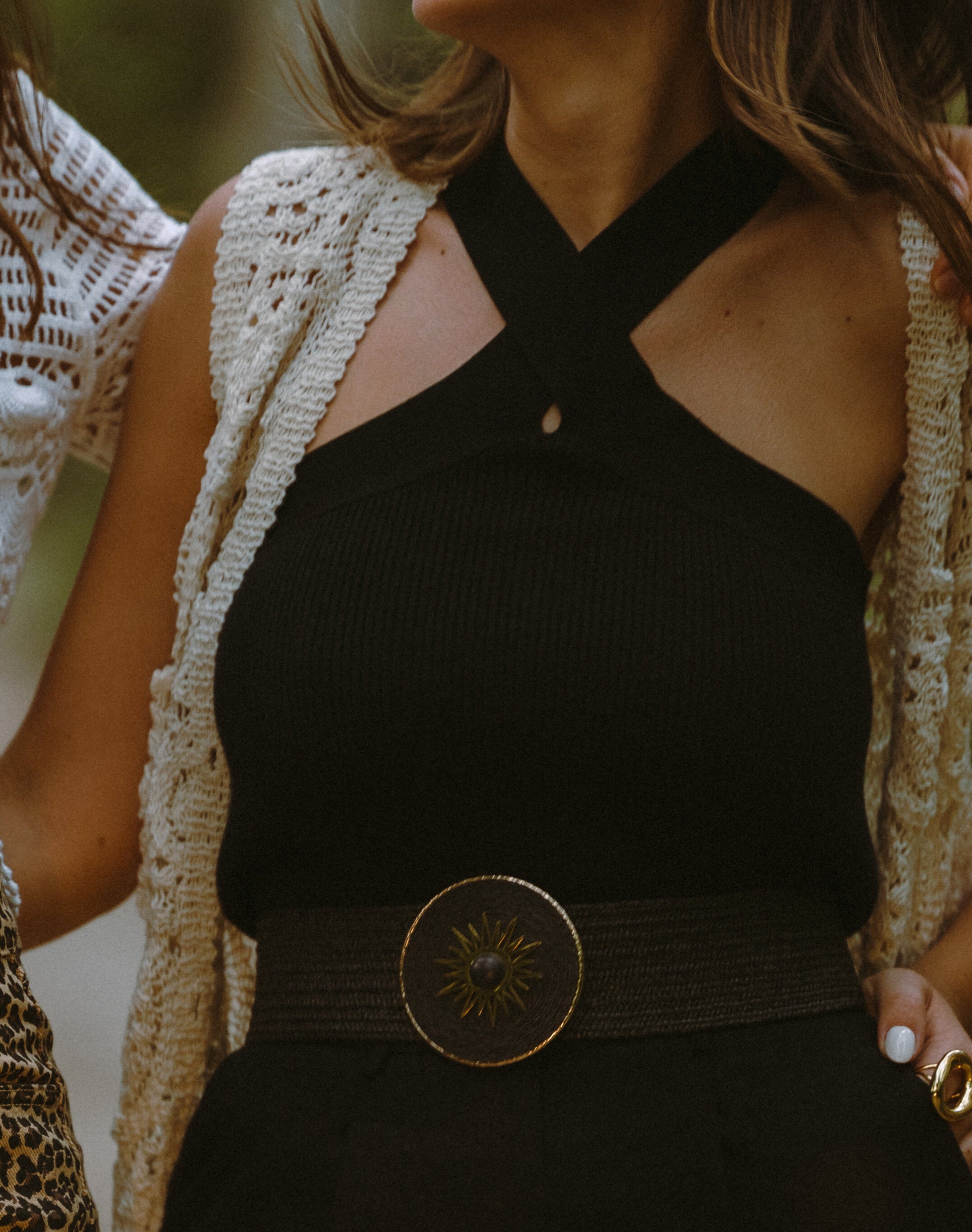 Extravagância e simplicidade num só top, com decote cruzado.